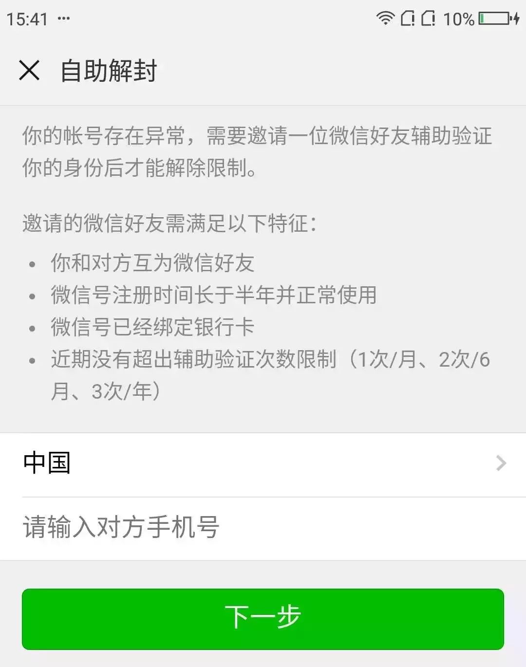 三个条件,必须同时满足,才能解封。 同时,帮你那位朋友,还得找到 @微信团队 来一段骚操作,这才能把你解封。 机哥感觉这个好友辅助验证,有点像贷款中的担保人,所以帮别人辅助验证解封的,那得注意咯。